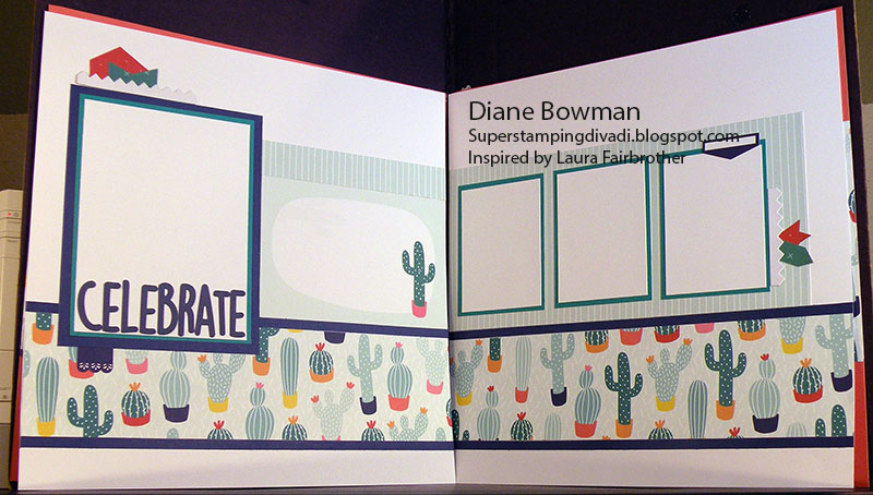 This is the hostess club layout and it is based on Make it From Your Heart (MIFYH) volume III. This is Pattern 2 and uses bulk paper. It's a quick and easy layout... easy to swap colors and even add more to it. It would be fun to put some shimmer trim on the side cactus papers... and even a big cactus would be fun to put on the page.